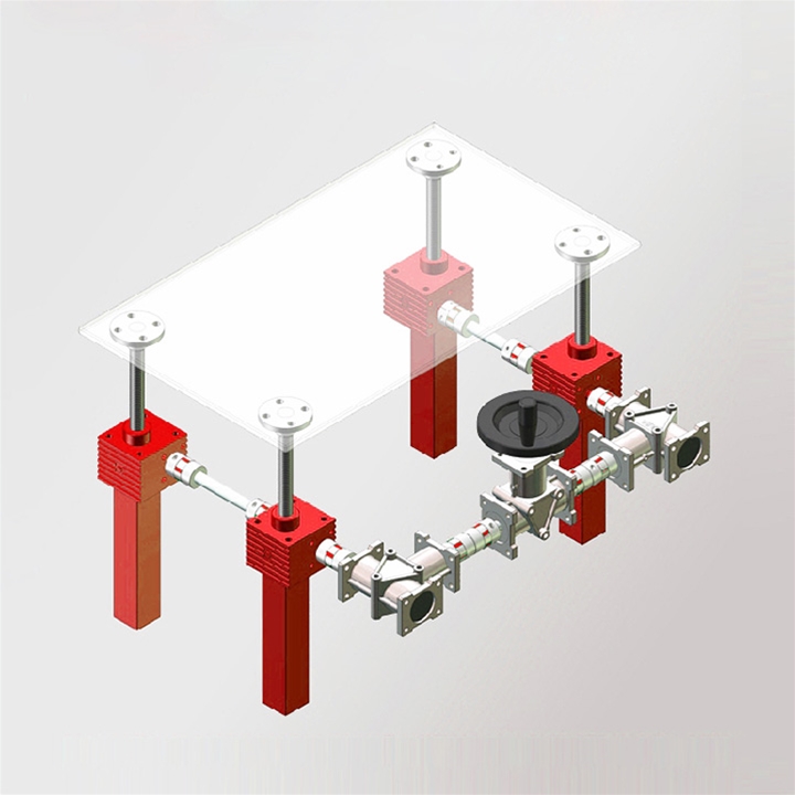 –同步,同一電機(jī)可同時(shí)驅(qū)動(dòng)多臺(tái)螺旋升降機(jī),機(jī)械同步